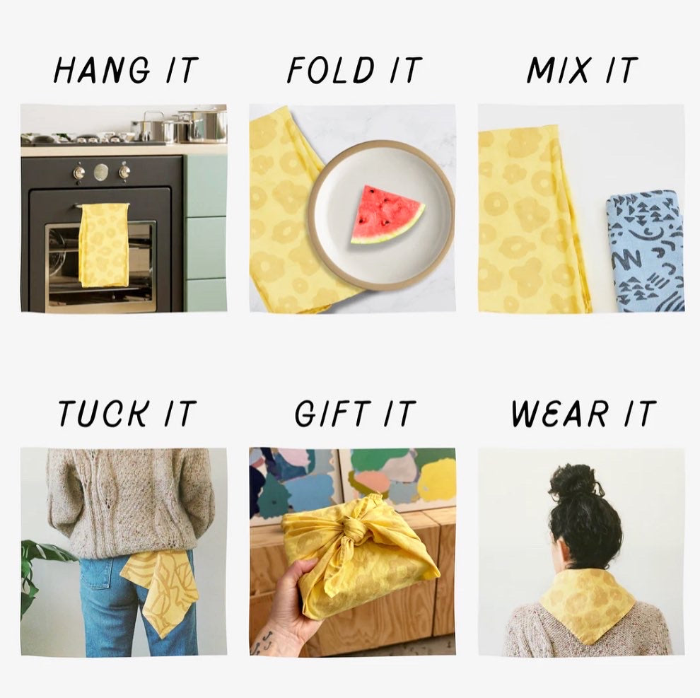 Use it as a bandana, neck scarf, tea towel, reusable gift wrap...the possibilities are endless.