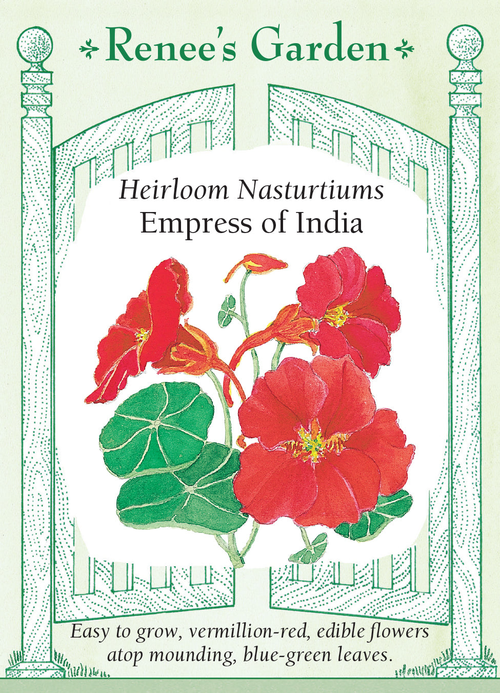 These easy to grow heirloom flowers with their unique deep blue-green foliage and vermilion-red blossoms have graced gardens for hundreds of years. Their glowing color attracts hummingbirds who love to visit the long-spurred blossoms. As a wonderful bonus, both the bright flowers and leaves are deliciously edible with a spicy watercress-like taste. Empress is my favorite for garnishing green or seafood salads, chopped and mixed with cream cheese or added to rice dishes.