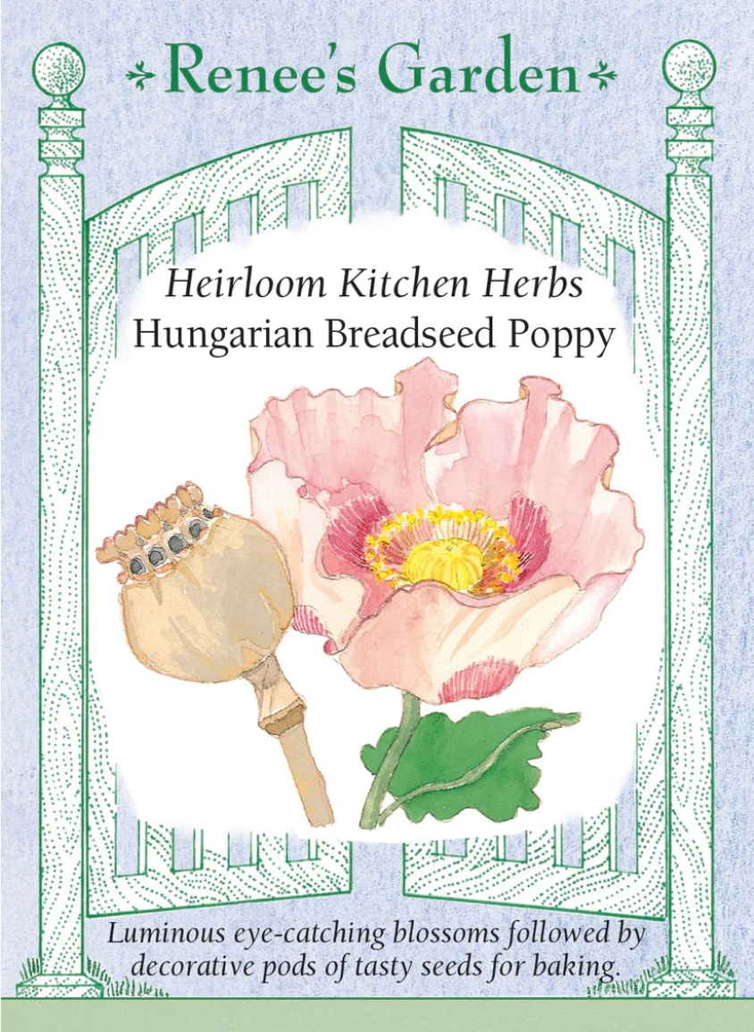 EXCLUSIVE - Baking with poppy seeds is a centuries old tradition, and easy to grow, cold-tolerant poppies are a joy in the spring garden. This large podded Eastern European heirloom strain has luminous, ethereal white or pale lavender-pink petals with contrasting dark center blotches and blue-green toothed leaves. The eye-catching flowers are followed by urn-shaped decorative pods full of tasty seeds delicious for cooking and baking. Homegrown poppy seed is wonderfully fresh, sweet and nutty tasting — you’ll love it!